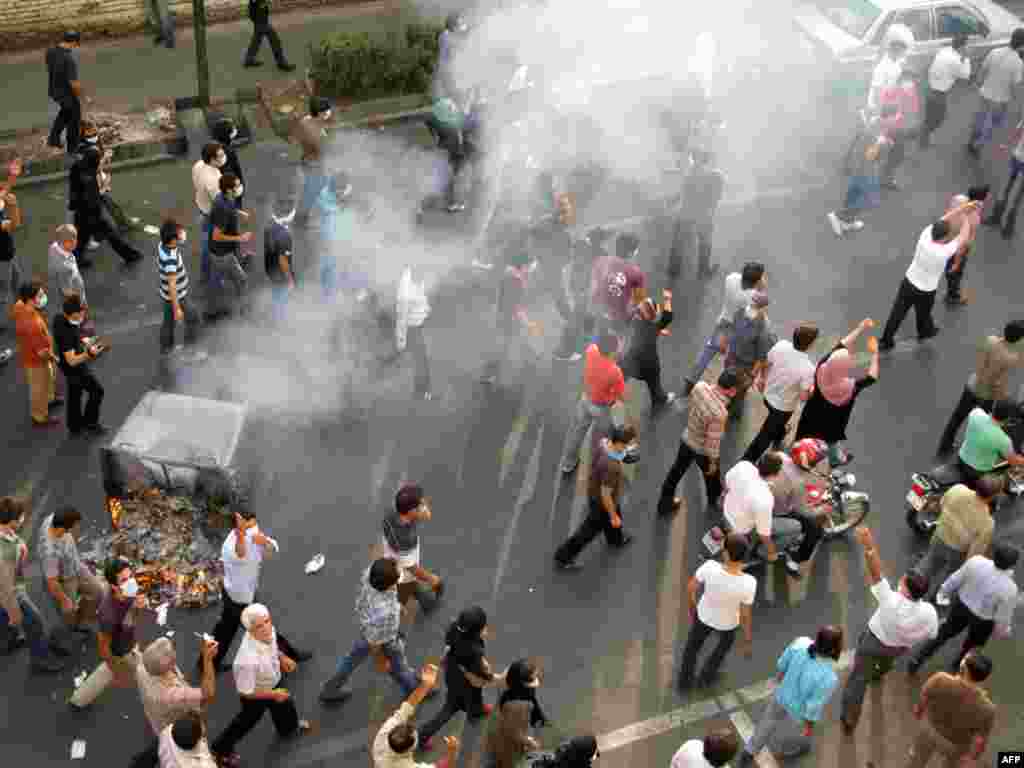 شلیک هوایی پلیس برای متفرق کردن هزاران تظاهر کننده در تهران