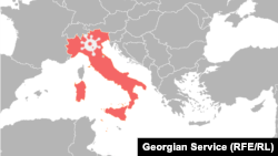 اکثر موارد ابتلا مربوط به نواحی شمالی ايتاليا از جمله لومباردی، ونتو و اميليا- رومانيا است.