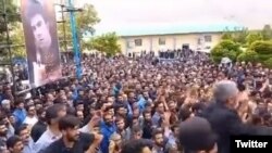 در بخشی از این مراسم نیز سرودهایی با مضمون تاکید بر ادامه اعتراضات علیه جمهوری اسلامی از جمله «ای لشکر بختیاری آماده باش آماده باش، ترک و لر، فارس و عرب آماده باش آماده باش، بهر نبردی بیامان آماده باش آماده باش» از بلندگوهای مراسم پخش شد و با حمایت مردم تکرار شد.