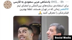 پس از اظهارات عزتالله ضرغامی، وزیر گردشگری و میراث فرهنگی ایران مبنی بر ضرورت نصب اپلیکیشن پیامرسانهای داخلی از سوی کریستیانو رونالدو، بازیکن مشهور تیم النصر عربستان، در سفر به ایران، حساب پادشاهی عربستان سعودی به فارسی نیز به این سخنان واکنش نشان داد.