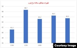 تازهترین گزارش مرکز آمار ایران که گزارش رسمی دولت جمهوری اسلامی از وضعیت تورم در کشور است، میانگین نرخ ۴۵.۵ درصد را گزارش کرده است، این در حالی است که میانگین نرخ تورم در اسفندماه ۱۴۰۱ بهطور رسمی ۴۶.۵ درصد اعلام شده بود.