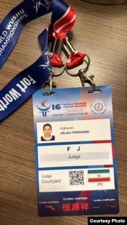 ارغوان جلالی فراهانی در مسابقات جهانی ۲۰۲۳ ووشو به میزبانی آمریکا بدون پوشش اجباری به قضاوت نشست.