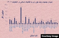 نمودار زیر جمعیت واجد حق رأی در انتخابات دوازدهمین دورۀ مجلس را به تفکیک استانها نشان میدهد.