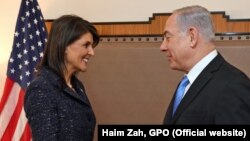 بنیامین نتانیاهو، نخست‌وزیر اسرائیل، روز پنجشنبه هفدهم اسفند با حضور در مقر سازمان ملل متحد، با نیکی هیلی سفیر آمریکا در این سازمان، دیدار کرد و خانم هیلی در این دیدار تأکید کرد که اکنون زمان تمرکز بر ایران است.