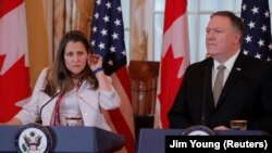 در همین روز مایک پومپئو وزیر خارجه کانادا پس از دیدار با همتای کانادایی خود در واشینگتن در نشستی مطبوعاتی بازداشت دو شهروند کانادایی در چین را «غیرقانونی و غیرقابل قبول» توصیف کرد.