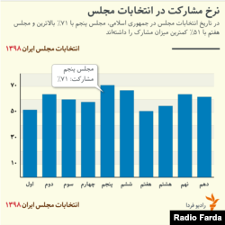 البته نتایج روز انتخابات مشخص خواهد کرد که فرجام چه خواهد شد. در پایان نرخ مشارکتهای رسمی در انتخاباتهای مجلس بعد از انقلاب در نمودار زیر به نمایش گذاشته شده که کمترین برای انتخابات مجلس هفتم و اول در نزدیکی ۵۰ درصد بوده و متوسط ۱۰ دوره، ۶۰ درصد هست.