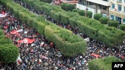 هزاران اسلامگرای تونسی یک روز پس از خاکسپاری یک سیاستمدار سکولار برای نمایش قدرت خود راهپیمایی کردند. خبرگزاریها نوشتهاند جمعیت حاضر در این خاکسپاری بزرگترین تظاهرات خیابانی پس از قیام دو سال پیش در تونس بود.