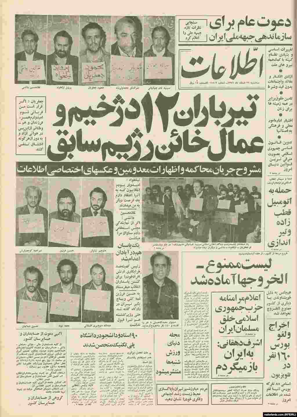 با وقوع انقلاب ۱۳۵۷ و درست از بيست و دوم بهمن ماه ، روند دستگيری مقام های کشوری و لشگری نظام پادشاهی و بلافاصله بعد از آن برگزاری دادگاه های انقلاب برای رسيدگی به اتهام های آنان کليد خورد، بطوريکه در يک سال نخست بنا بر آمار سازمان عفو بين الملل بيش از ۴۳۰ اعدام انقلابی در ايران رخ داد که بيشتر آنها با رای دادگاه انقلاب جنبه قانونی پيدا کرد. اين دادگاه به دستور بنيانگذار جمهوری اسلامی ايران آيت الله خمينی و به رياست «محمد صادق صادقی گيوی» معروف به «شيخ صادق خلخالی» تشکيل شد. رادیو فردا در این نوشتار روند برگزاری و صدور احکام دادگاه های انقلاب اسلامی به رياست صادق خلخالی تا نوروز ۵۸ يعنی در دو ماه نخست پس انقلاب به روايت روزنامه اطلاعات بررسی می شود.