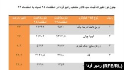 در بررسی تغییرات قیمتی سبد کالای منتخب رادیو فردا نیز رشد قیمتی این سبد کالایی کاملا محسوس است.