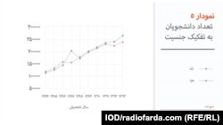 نرخ مشارکت زنان طی سال‌های ۱۳۸۴ تا ۱۳۹۳ درحالی کاهش پیدا کرده که جمعیت دانشجویان زن و به تبع آن زنان فارغ‌التحصیل از دانشگاه‌ها افزایش کم‌سابقه‌ای داشته است. این افزایش به‌گونه‌ای بوده که تعداد دانشجویان زن در برخی از سال‌های دوره مورد بررسی از مردان هم بیشتر شده است. نمودار شماره ۵ تعداد دانشجویان را از ابتدای دهه ۸۰ خورشیدی به تفکیک زن و مرد نشان می‌دهد. تعداد دانشجویان دختر در سال ۱۳۸۴بیش از یک‌میلیون و ۲۳۱هزار نفر بوده و این تعداد در سال ۱۳۹۳ از ۲میلیون و ۲۵۳هزار نفر فراتر رفته است.