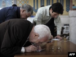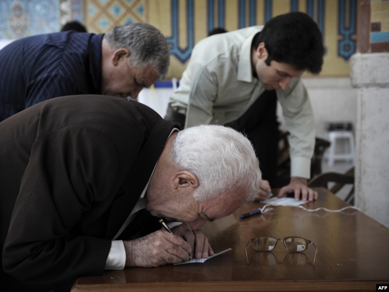 یکی از رایدهندگان در حال نوشتن نام نامزد مورد نظر خود