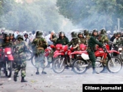 اگر در حکومتى مقامات نظامى رسما و عملا مسئول سرکوب و نقض اين آزادىها باشند اين حکومت را مىتوان حکومت نظامى ناميد. بنا براين وقتى فرماندهى سپاه به صراحت و مکررا اعلام مى کند که ماموريت سازمانش مقابله با تهديدات نرم است- بدون آوردن نام اصلى اين امر- بيان مىکند که کشور با ديکتاتورى نظامى اداره مىشود. ماموريت سپاه پاسداران در ذيل ولايت فقيه پشتيبانى و حمايت از رهبرى و نهادهاى تحت وى است.