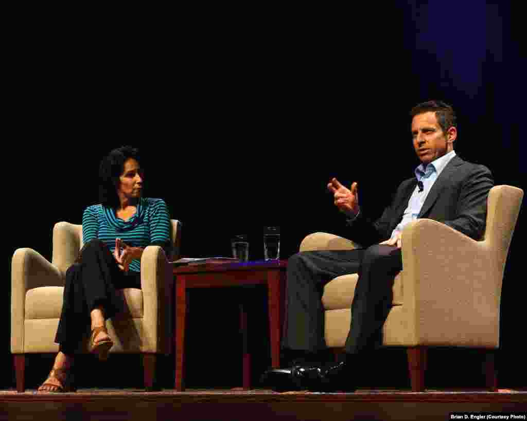 سم هریس در جلسه معرفی کتاب آخری خود با نام «بیدار شدن» در دانشگاه جورج واشینگتن حاضر شد و با معرفی کتاب، به پرسش های حاضران پاسخ داد.