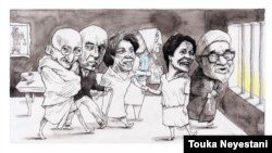 من برای این مهمانی شام از مهاتما گاندی، یکی از مادران میدان مایو در آرژانتین، پروانه فروهر از هموطنان خودم که به طرز فجیعی در کشور به قتل رسید، دکتر محمد مصدق و آیتالله منتظری مایلم دعوت به عمل آورم.