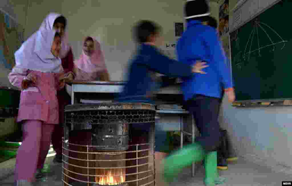 عکسهایی از خبرگزاری مهر که روایتگر استفاده از بخاریهای نفتی در مدارس مناطق محروم ایران است.