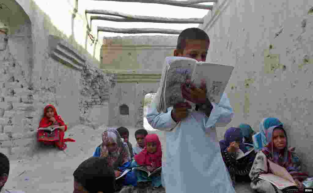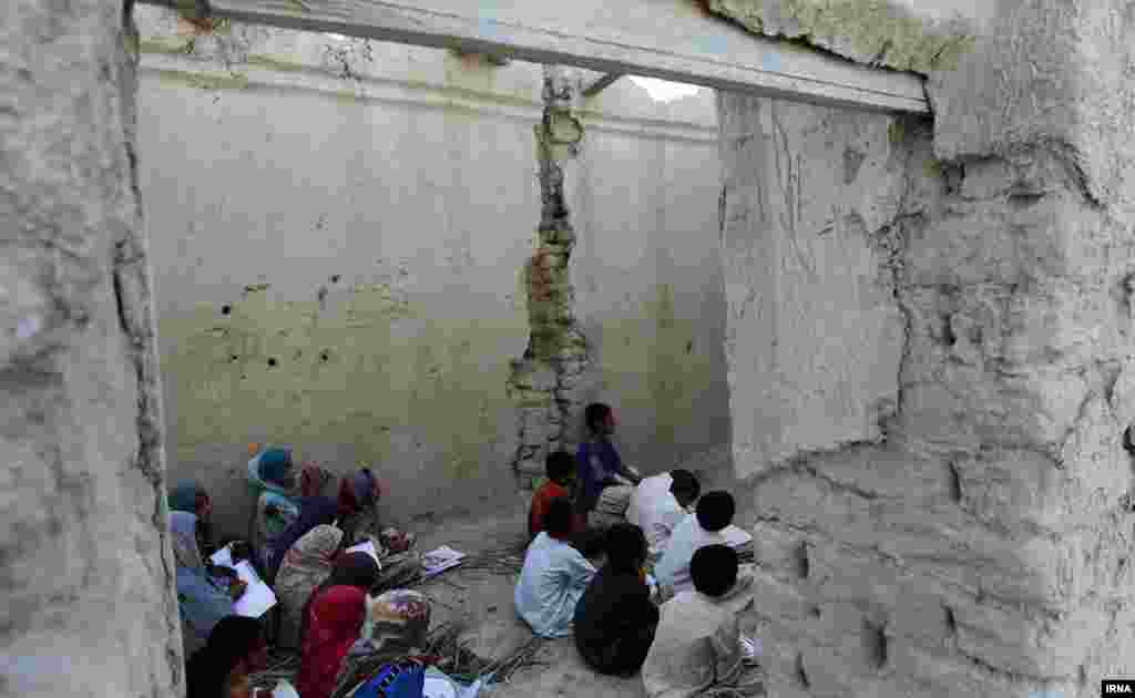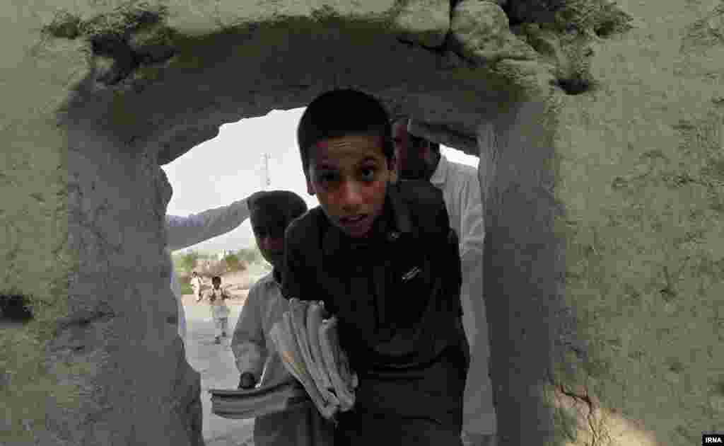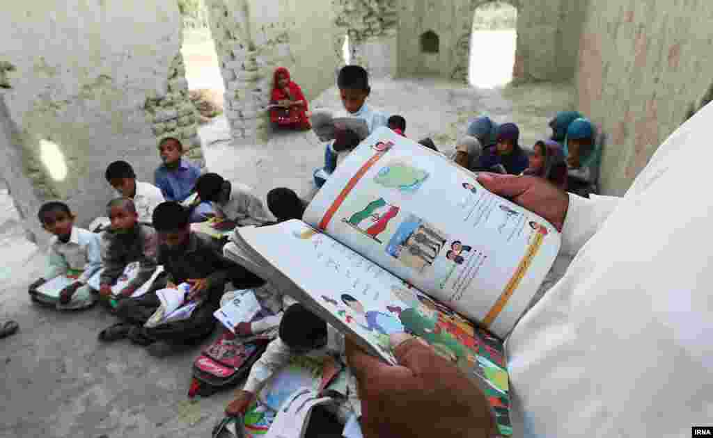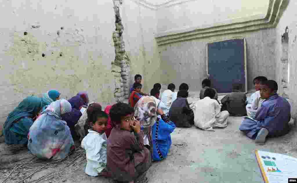 دانشآموزان روستای کوچو در استان سیستان و بلوچستان در ویرانهها درس میخوانند، چرا که تنها مدرسه این روستا توسط مسئولان به یک شرکت ساختمانی اجاره داده شده و به انبار این شرکت بدل شده است. [عکسها از اکبر توکلی/ ایرنا]