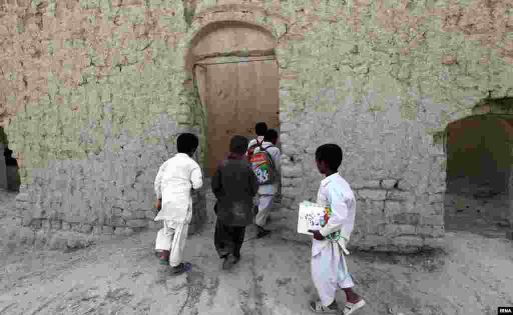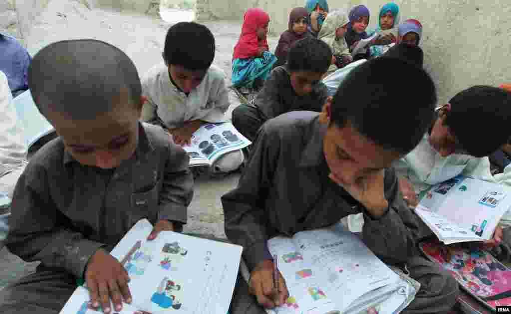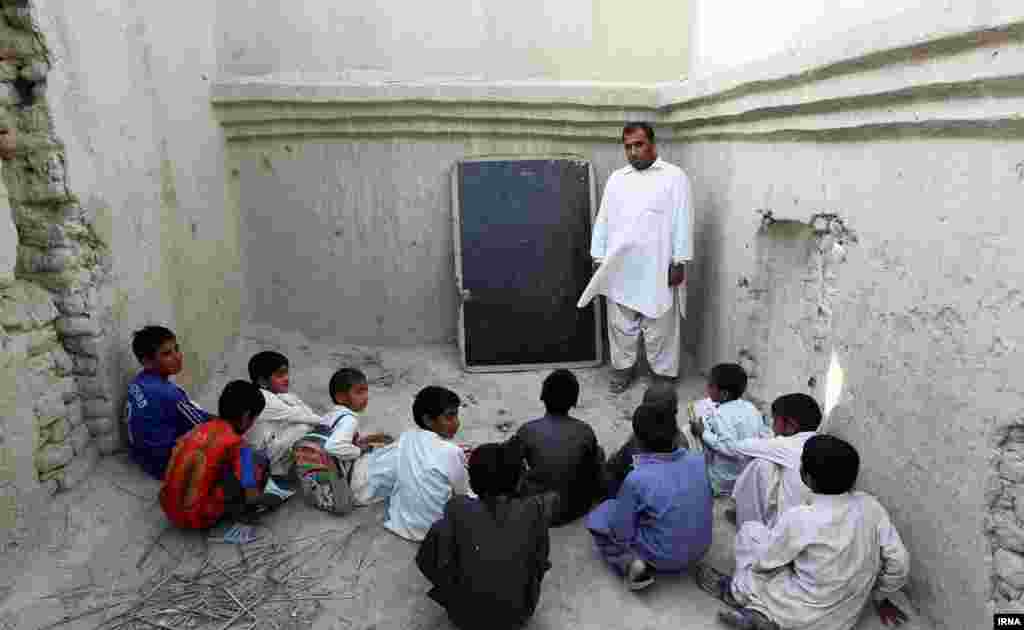 دانشآموزان روستای کوچو در استان سیستان و بلوچستان در ویرانهها درس میخوانند، چرا که تنها مدرسه این روستا توسط مسئولان به یک شرکت ساختمانی اجاره داده شده و به انبار این شرکت بدل شده است. [عکسها از اکبر توکلی/ ایرنا]