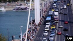 صدها یا شاید هم بیش از هزار پناهجو ر طول بزرگراه M1 بوداپست پیاده‌ حرکت می‌کنند.
