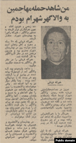 از دو «ماشینپای خیابان فیشرآباد»، یک نفرشان کشته میشود. دیگری خیرالله قربانی ۲۵ ساله اهل زنجان است که عکس و مصاحبهاش در مطبوعات چاپ شد. ۱۲ روز بستری بود و برای قدردانی از رشادتش، در دفتر شهرام پهلوینیا شاغل شد.
