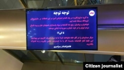 تصویر منتشر شده در خبرگزاری دولتی ایرنا که حاکی از هک نمایشگرهای فرودگاه مشهد در شامگاه پنجشنبه است.