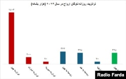 شرکت «تانکر ترکرز» با انتشار پستی در شبکه ایکس، تویئتر سابق، نوشته است پارسال ایران از طریق ناوگان ارواح روزانه حدود ۱.۵ میلیون بشکه نفت (نفت خام، میعانات گازی و گاز مایع) راهی چین، ۲۰۰ هزار بشکه (نفت کوره یا مازوت) راهی امارات و ۷۰ هزار بشکه نفت خام راهی سوریه کرده است.