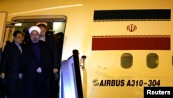 به گزارش خبرگزاری ایرنا، اسحاق جهانگیری، معاون اول رییس جمهوری ایران و علی اکبر ولایتی در فرودگاه از حسن روحانی استقبال کرده اند.