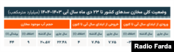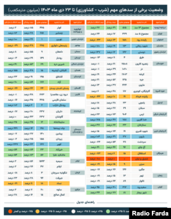 گزارشهای رسمی نشان میدهد که از ابتدای سال آبی تا ۲۳ دیماه ۱۴۰۳ شش سد زیر ۱۰ درصد آب دارند و حجم آب موجود در مخازن ۴۴ درصد است.