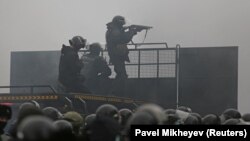 خبرنگاران رادیو اروپای آزاد/ رادیو آزادی در آلماتی میگویند روز پنجشنبه ۱۶ دی نیروهای امنیتی که برخی از آنها سوار بر نفربرهای زرهی بودند در میدان جمهوری به سوی معترضان شلیک کردند.