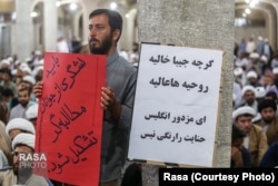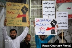 این طلبه نوشته که در برابر «فساد و تبعیض» ساکت نخواهد نشست. دست‌نوشته دوم در همین تصویر نیز طلبه‌ای نوشته که «حنجره صدای کارگران شلاق خورده آق‌دره» است.